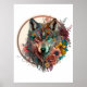 Un lobo conectado con la naturaleza revela lo que es primordial y más hermoso en nosotros. El depredador peligroso y las flores delicadas son un contraste que nos habla a todos.