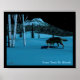 Una pintura digital de un lobo caminando a través de la nieve dura y crujiente en una noche de invierno muy fría; un pico cubierto de árboles crece en el fondo. La luz de la luna brillante refleja tanto la nieve como la ladera pálida de los abedules. Los ojos del lobo también brillan con la luz de la luna reflejada. Añade tu propio texto. La calidad reflectante de muchos ojos de animales se debe al tapetum lucidum (latín: "tapiz brillante; cobertor"), una capa de tejido que se encuentra inmediatamente detrás de la retina, que refleja la luz que se retrotrae a través de la retina, aumentando la luz disponible para los fotoreceptores del ojo. La existencia de un tapetum lucidum contribuye a la excelente visión nocturna de muchos animales que son activos por la noche, como los carnívoros nocturnos y las criaturas del mar profundo.