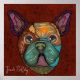 Único rostro loco de perro Bulldog francés con audaces y coloridos patrones abstractos en un fondo rojo. Popular con los amantes del perro y de las mascotas y los amantes del rescate de los perros.
