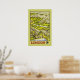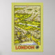 Ilustracion aéreo de posters de viajes vintage de Londres, que muestra el Parlamento, el Big Ben, St James Park y el Palacio de Buckingham. Un gran afiche de viaje del Ferrocarril Occidental.