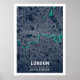 Póster Londres - Reino Unido Mapa de la Ciudad Oscura Azu