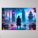 Un guerrero atemporal se une a la era moderna. Este cautivador arte impreso representa a un samurai navegando por una metrópolis iluminada por neones, mezclando el honor tradicional con tecnología futurista.