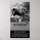 Esta es una foto fresca en blanco y negro de un adolescente haciendo una pose para la oración en longboard y una cita sobre tener perseverancia para superar cualquier obstáculo en tu camino.