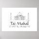 Coordenadas de latitud y longitud para el Taj Mahal, sitio de la UNESCO en Agra, Uttar Pradesh, India. Presenta un esbozo vectorial de la fachada del monumento.
