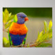 Un hermoso loro de color arcoiris de Lorikeet se sienta sobre la rama de un árbol, sólo con aspecto de bonito.