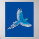 Imagen de un loro amazónico en vuelo - azul y blanco ceruleño contra fondo azul cobalto profundo - fotografía realzada digitalmente