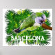 Póster Loro verde y hojas de palmera acuarela