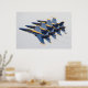 El escuadrón de demostración de vuelo de la Marina, los Ángeles Azules, pilotos de diamantes realizan la maniobra de desfile de escalones durante el entrenamiento de invierno en la planta aérea naval El Centro, California. Mientras vuelan a una velocidad de 350 mph, los cuatro pilotos de diamantes se apilan hacia abajo en una línea de rodamiento de 45 grados para establecer una formación de escalón derecho (2 de marzo de 2014 - Fotografía del especialista en comunicación masiva de segunda clase Andrea Perez - Liberado).