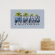 Gran poster de aspecto que muestra Los Angeles California. El paisaje urbano está dentro de las Letras coronadas por grandes palmeras.