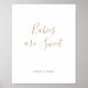 Añada un toque elegante a su mesa de postres con este Minimalista Poster de oro "Los bebés son dulces, disfruten de un trato". Con un sofisticado texto dorado y un diseño limpio y moderno, es perfecto para duchas de bebé, fiestas neutrales en género o celebraciones elegantes. Ideal para sus dulces o para la estación de bar de caramelos, este cartel está disponible como versión impresa o descarga digital.