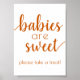 Moderno "Los bebés son dulces: por favor, tómate un aperitivo", ducha, fiesta o carteles de recepción con un divertido y casual guión con letras a mano. El diseño clásico incluye un moderno superpuesto de tipografía con letras a mano. El bonito tipo de letra con un color de fondo de personalizable facilita la adaptación a cualquier tema. Para otros colores o productos a juego, por favor visite la tienda JustFharryn Zazzle, o contacte con el diseñador, c/o fharryn@yahoo.com Todos los derechos reservados. #zazzlemade