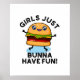 Chicas Just Bunna Have Funny Burger Pun presenta una hamburguesa linda bailando. Perfecto regalo de juego de palabras para la familia y amigos que aman los juegos de bollos de hamburguesas.