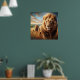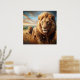 Un majestuoso león y una leona se paran orgullosamente en un campo pintoresco, su magnífica mane fluyendo en el viento mientras observan sus alrededores con una gracia regia.