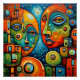 A.I. la impresión asistida de una cara vibrante de tipo humano se encuentra en un paisaje surrealista observar la escena circundante llena de patrones giratorios y formas abstractas.