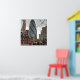 El icónico rascacielos moderno con un diseño geométrico único se destaca prominentemente contra un telón de fondo de un cielo vibrante, mientras que los edificios históricos y una escultura caprichosa son visibles en primer plano. La escena contrasta la arquitectura contemporánea con las estructuras clásicas de Londres. ¡En primer plano notarás los otros pepinillos de Londres!