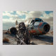 A person in a gas mask and tactical gear stands in front of a dilapidated, abandoned airplane in a barren desert setting. The sky is partly cloudy, giving a stark contrast to the gritty, dystopian scene below.