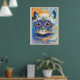 Póster Louis Wain, gato con ojos decorados con flores, Po