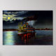 Imagen vintage de un barco de vapor con ruedas en el río Ohio a la luz de la luna cerca de Louisville, Kentucky.
