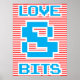 Love 8 Bits, poster gracioso, camiseta tipográfica poster tipográfica, - Serie Jugando con franjas, franjas azules y rojas, poster tipográfico, camiseta tipográfica,