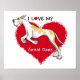 Que todos sepan que AMAN a su Gran Danés (orejas recortadas) con este gran corazón rojo y bailes saltando con el texto "I Love My Great Dane" de Danes-R-Us.