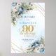 Póster Lovely dusty blue watercolor florals 90th birthday