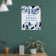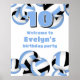 This volleyball themed birthday party welcome poster is fully customizable and features randomly arranged light blue, black and white volleyballs, upon which you can personalize your custom message and the child's age, or customize the text to suit your event - by katz_d_zynes