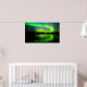 Intensas luces boreales (Aurora borealis) sobre el lago Laberge, Territorio Yukón, Canadá, con siluetas de sauces a orillas del lago.