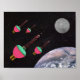 Una fantasía espacial de vacaciones con barcos de luz de burbujas orbitando la Tierra con la luna a la distancia y un fondo de cielo estrellado. Parece casi como un clásico tema Si-Fi o una invasión alienígena espacial con las luces de burbuja como una armada de naves espaciales. Sin embargo, es simplemente una ilusión de arte de ciencia ficción como una obra de arte.