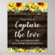 Ayuda a tus invitados a compartir sus fotos de tu boda con este letrero de hashtag de boda con girasoles amarillos rústicos.