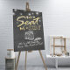Letrero de Boda Elige un Asiento No un Lado - Elegantes Luces de Cadena y Frasco de Mason con Fondo de Pizarra Negra Grunge. Un Diseño Perfecto para tu Gran Día. ¡Todo el estilo, colores y tamaños del texto pueden ser modificados para ajustarse a tus necesidades!