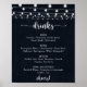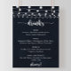 Este letrero de menú de bebidas para boda con luces de cadena rústicas es perfecto para una boda sencilla. El diseño cuenta con hermosas luces de cadena pintadas a mano sobre un fondo azul oscuro.