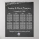 Letrero de Asientos de Boda con Luces de Cadenas, diseño de Tarro de Mason y Pizarra con luces brillantes en la noche, tarro de Mason lleno de suaves flores de hortensias, una etiqueta de pizarra con las iniciales de la novia y el novio, todo sobre un fondo de pizarra.