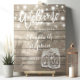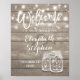 Plantillas de cartel de señal de recepción de boda de bienvenida - Elegantes luces de frasco de Mason y luces de cuerda en fondo de madera rústica. Un diseño perfecto para tu gran día. ¡Todo el estilo de texto, colores y tamaños se pueden modificar para satisfacer tus necesidades!