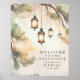 Luces de linterna botánica de árbol rústico para boda con letrero de bienvenida