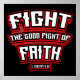 Escritura motivadora de versículos de la Biblia Cristiana 1 Timoteo 6:12 "Lucha contra la buena lucha de la fe", con un texto esporádico rojo negrita gráfico. Difundir inspiración y motivación espiritual con este mensaje de perseverancia cristiana basado en la fe. Gran conversación inicial y idea presente perfecta para los seguidores religiosos y renacidos de Jesucristo. Ideal para hombres, mujeres, adolescentes, jóvenes y niños. Disponible únicamente en línea.