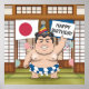 Esta es una imagen generada por IA. Me gusta ver lucha de sumo así que quería hacer un diseño de cumpleaños de luchador de sumo. Pensé que el diseño debería tener al luchador usando un gorra de cumpleaños. Y pensé que también debería haber una bandera japonesa en el fondo.