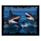 Acerca del "Ataque de tiburones" La impresión de un artista de dos grandes tiburones blancos poderosos peleándose entre sí. ¡Da miedo!