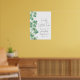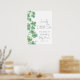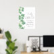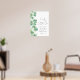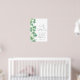 This elegant welcome sign features green watercolor shamrocks or clovers down the left side, perfect for a “Lucky Little One” St. Patrick’s Day baby shower. At the top, “Welcome” is displayed in handwritten script, with “Lucky Little One” in a sweet matching script above. The parent’s name and shower date appear on the right side in a classic serif font. Fonts and background colors are fully customizable to match your theme, making it a festive and charming way to greet guests.