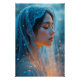 Retrato hiper realista de perfil lateral de una joven tranquila con los ojos cerrados, sus características suavemente iluminadas por una cálida luz naranja que se levanta desde abajo y los frescos tonos azules que caen desde arriba. Un velo azul brillante, delicadamente bordado, enmarca su cara, mientras las espectros brillantes brillan por su piel y se deslizan en el aire. Las avispas de vapor se tejen a su alrededor con gracia, acompañadas de un sutil resplandor de miembro debajo. Situada en un fondo mágico y de enfoque suave, la imagen captura un equilibrio etéreo de serenidad, misterio y belleza de ensueño.