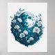 Póster Luna acuarela flores estrellas celestiales