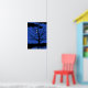 Póster Luna con árbol, azul cobalto, negro y blanco