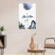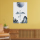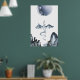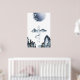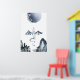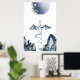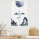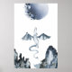 Luna llena y dragón en tonos azul turbio sobre Poster de fondo blanco -