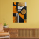 Sophisticated abstract art with bold geometric shapes! Vibrant orange blocks mixed with rich textures of gold and marble. Modern design perfect for high-end interior decoration, magazine covers, and corporate projects. Conveys contemporary elegance and visual strength in every precise line!
