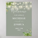 Este elegante eucalipto verde luces botánicas de cuerda sage boda verde señal de bienvenida se puede personalizar con su información en la tipografía de moda. Diseñado por Thisisnotme©