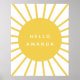 Simple, elegante y lindo "Hola<name>" cartel personalizado con un divertido diseño gráfico de sol estilo escandinavo 'scandi' en amarillo mostaza con tipografía moderna de bloque blanco que puedes personalizar fácilmente con tus propias palabras, frase y nombre. ¡Un regalo perfecto y personalizado para un ser querido!