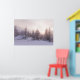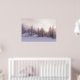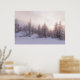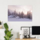 Bosque de abetos cubierto de nieve justo antes de la puesta del sol.
