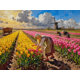 “Lysbeth in the Amber Light” - A Dutch Landscape. As the sun begins its descent, Lysbeth works beneath the molten glow of a Dutch evening. The tulips gleam in bands of gold and rose, their perfume mingling with the scent of fresh soil. Each bloom she straightens becomes a gesture of gratitude - a small, wordless prayer to the earth that sustains her simple yet luminous life.