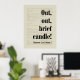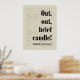 Sumérjase en el oscuro y conmovedor mundo de la Macbeth de Shakespeare con esta obra de arte meticulosamente elaborada, que presenta la icónica frase "¡Fuera, fuera, breve vela!", presentada de forma destacada en una tipografía elegante. Esta poderosa línea, hablada por Macbeth en la escena 5 de la Ley 5, captura la esencia de la exploración de la naturaleza fugaz de la vida y la inevitabilidad de la muerte. El fondo de esta pieza integra sutilmente el pasaje correspondiente de la obra, añadiendo una capa de profundidad y contexto literario que resonará con cualquier amante de la literatura clásica. El diseño de esta obra de arte equilibra maravillosamente la reverencia histórica con el atractivo estético moderno. La cita principal se destaca en una tipografía audaz y refinada con un fondo que evoca la textura y la apariencia de un manuscrito antiguo. El delicado guión del pasaje de la obra, representado con una letra atemporal, mejora la autenticidad de la obra y atrae al espectador al intrincado mundo del drama de Shakespeare. Esta interacción armoniosa de texto y elementos de diseño crea una pieza visualmente impresionante que es a la vez estimulante intelectualmente y placentera estéticamente. Ideal para aficionados a la literatura, eruditos de Shakespeare y amantes del arte por igual, esta obra de arte es más que una simple pieza decorativa, es una celebración de una de las obras más profundas y duraderas de la literatura inglesa. Ya sea que se muestre en un estudio, biblioteca o sala de estar, seguro que inspirará una reflexión reflexiva y encenderá conversaciones sobre los temas atemporales de ambición, poder y mortalidad en Macbeth. Este artículo es un regalo reflexivo para cualquiera que aprecie la belleza y complejidad de la escritura de Shakespeare.