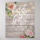 Mesa de Regalo boda / Tarjetas y Regalos Boda Rótulo plantillas Posters - Floral de color de agua vintage y elegantes cadenas de luz sobre fondo de textura de madera rústica. Un diseño perfecto para tu gran día. Todos los estilos de texto, colores, tamaños se pueden modificar para adaptarlos a sus necesidades.