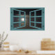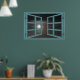 Póster Madera verde luna 6 panel Abrir Poster de ventana